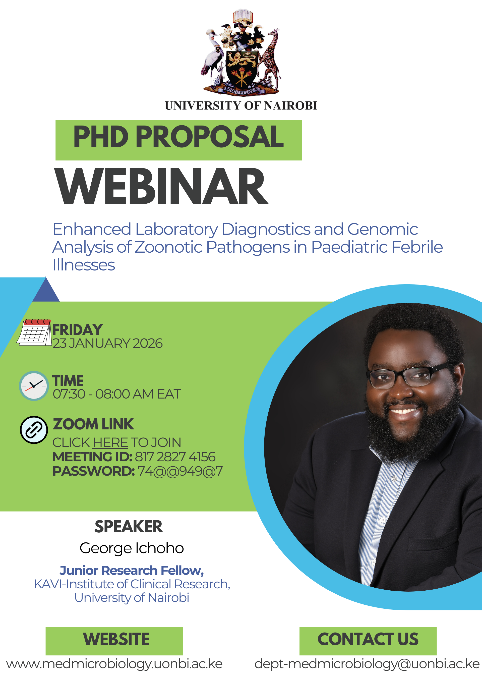 Join us for PhD Proposal on Enhanced Laboratory Diagnostics and Genomic Analysis of Zoonotic Pathogens in Paediatric Febrile Illnesses by George Ichoho.